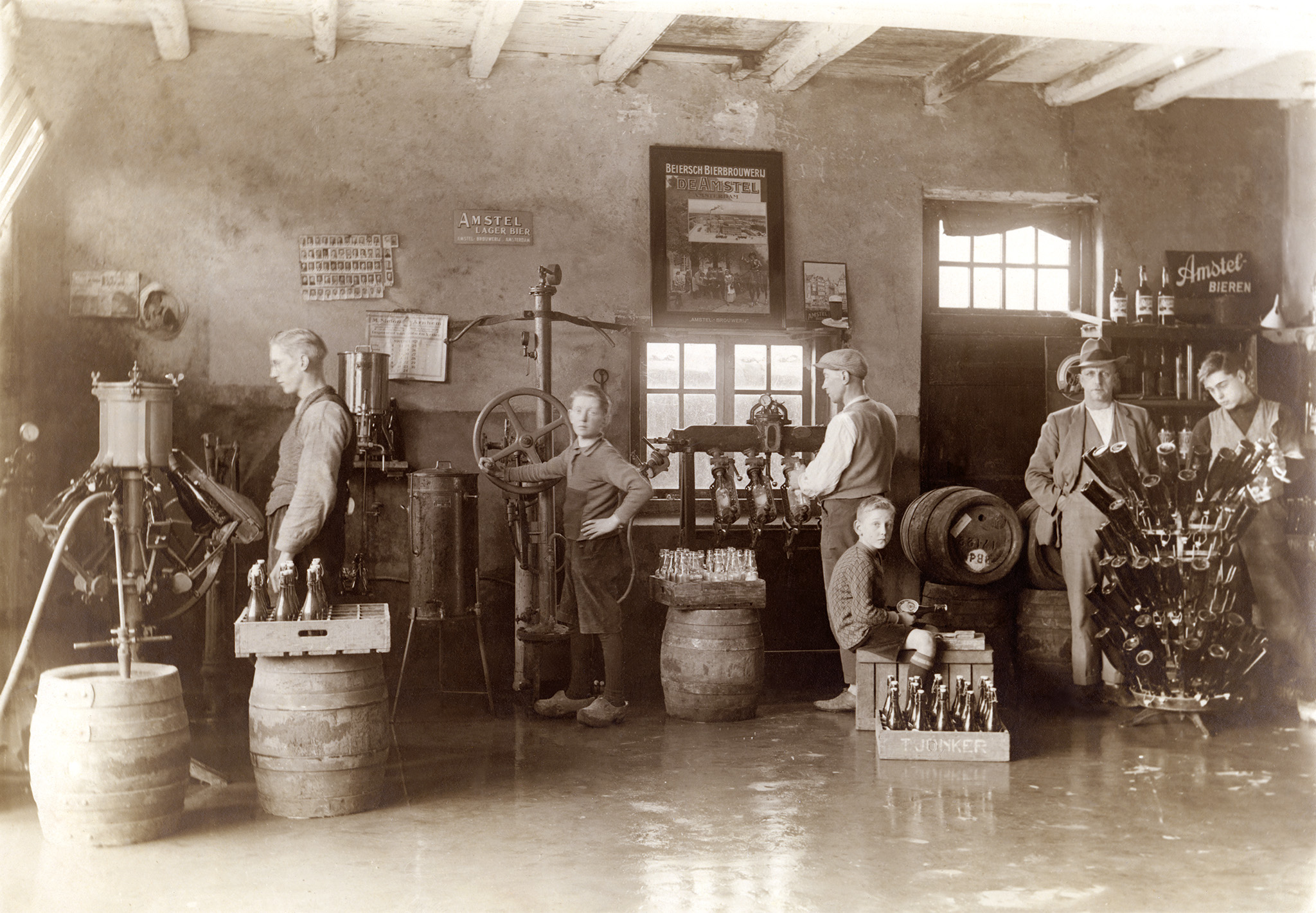 The addition of extra carbonation to beer dates to a later time: it became necessary in the late 1950s due to the production of beer in cans. The Amstel Brewery, at the forefront of this development, discovered that it is challenging to control both the carbonation level and the foam strength during the can-filling process. As a solution, the can is filled through two taps: one with oxygen provides ‘counterpressure’ to the beer from the other tap, preventing it from foaming. This is followed by several carbonation injections to remove the oxygen residues from the beer. Extra carbonation is also added to compensate for the loss of carbon dioxide that may occur during the sealing process of the can.