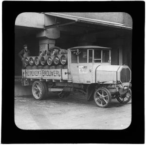 But it was not until the twenties that the internal combustion engine gradually replaced horse-power. In those years the Amstel brewery also used electric-powered lorries to transport beer in Amsterdam. Because they made no noise they were known by Amsterdammers as the ‘sluipmoordenaars’ – assassins. Horse-drawn drays were still in regular use for transport up to the Second World War, specifically in the inner city where, because of the short distances involved and the necessity for frequent stops, they could still compete with motorized transport. Right up to the seventies in Amsterdam’s inner city beer barrels were delivered by horse-drawn drays.