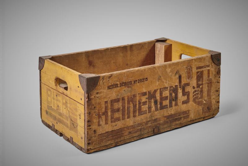 Je kunt je nauwelijks meer voorstellen dat Heineken lang geleden flessenbier in houten kisten leverde. Deze winkeldisplay…