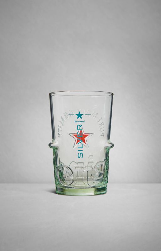 Een bijzonder glas, het speciale 25cl-glas voor Heineken® Silver. Lichtgroen gekleurd en versierd met reliëf, de rode ster en de…