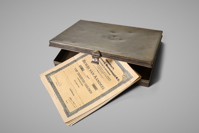 Op een plank in het depot bewaart de Heineken Collection Foundation - naast de ‘muziekdoos’ van Alfred (Freddy) Heineken - een…