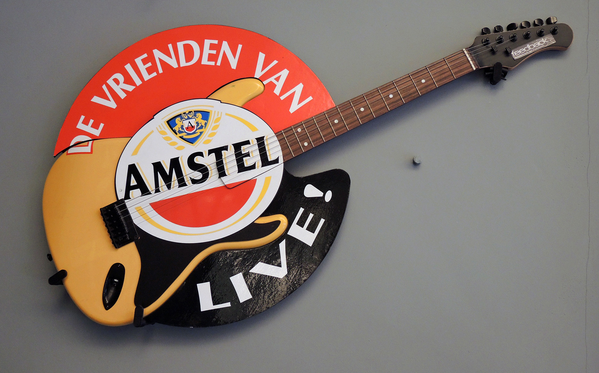 Deze elektrische gitaar is een coproductie van het Ierse gitaarmerk Hudson en Fazley - huismerk van muziekwinkel BAX. Het instrument werd in 2022 op maat gemaakt voor Heineken, in het kader van de ‘unexpected bars’ op festivals, in dit geval Lowlands. Zulke bierbars, een idee van Heineken Nederland, duiken op de meest onverwachte plekken op muziekfestivals op.